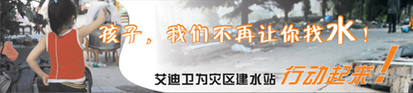 純凈的心是幸福的源泉,獻出我們的愛(ài)心,為災區的兄弟姐妹父老鄉親盡我們綿薄之力,為他們開(kāi)掘一汪愛(ài)的源泉。艾迪衛率全國各服務(wù)中心聯(lián)合各合作商、生產(chǎn)廠(chǎng)家發(fā)起玉樹(shù)地震災后重建飲水安全——艾迪衛“應急飲水援助項目”倡議 。專(zhuān)注一個(gè)點(diǎn),做好一件事。為災后重建提供應急飲水所需的凈水技術(shù)、設備和援建凈化水站。